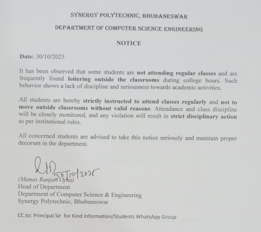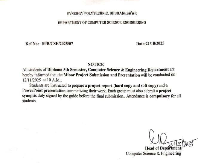 CSE Department at Synergy Polytechnic Bhubaneswar, it’s my privilege to shed light on the department’s commitment to excellence and adherence to the guidelines set forth by SCTEVT (State Council for Technical Education & Vocational Training) Odisha. Our CSE Department stands as a beacon of innovation and academic prowess, offering a comprehensive curriculum that aligns seamlessly with SCTEVT standards.